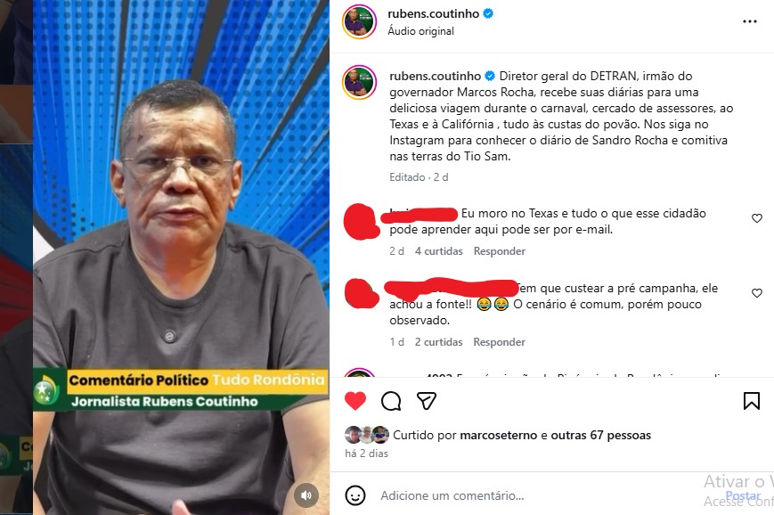 E concordo com o colega “Rubinho” trouxe em seu vídeo no Instagram: “Qual o motorista, servidor administrativo que recebe diárias adiantadas? E vou além: até os seguranças do próprio governador recebem essas diárias adiantadas? Mas o irmão dele, diretor-geral do Detran já colocou o valor no bolso”. É Rubinho, quem é amigo do rei fica mais fácil né???