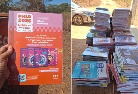 Os livros encontrados fazem parte da coleção didática “360º Área de Conhecimento: Linguagens e Suas Tecnologias 1”, destinada ao ensino médio no período de 2026 a 2029. No entanto, a suposta falência da editora foi desmentida.