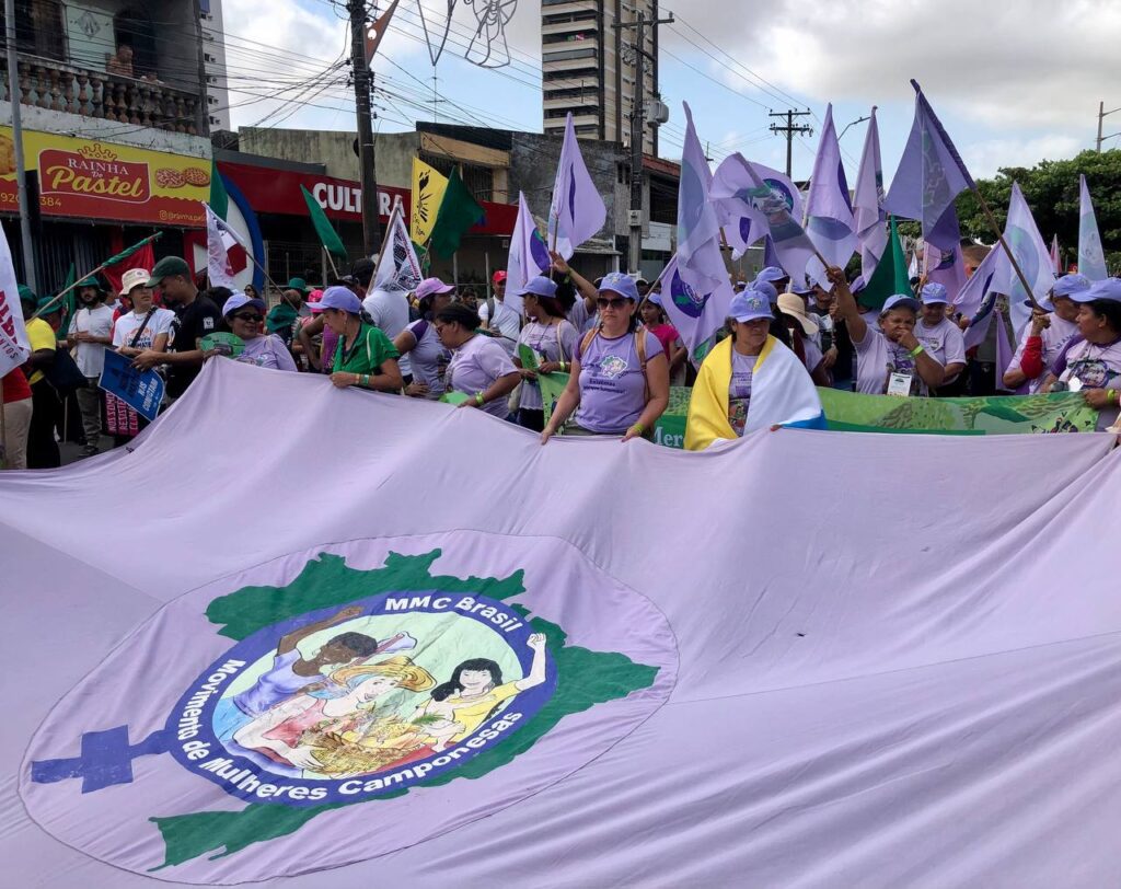 Entre os movimentos presentes, o Movimento Nacional de Mulheres Camponesas se destacou ao reivindicar reforma agrária, agroecologia e soberania alimentar. Suas participantes ecoaram a palavra de ordem: “Fim do colonialismo verde e suas falsas soluções”.