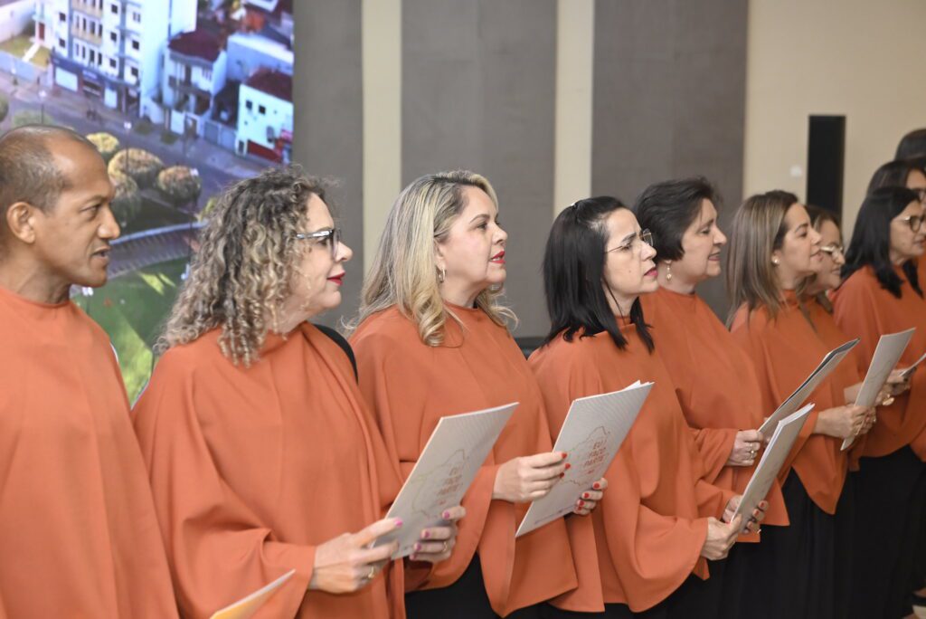 Vamos de novo a mais um trecho da nossa canção principal: “A orquestração empolga toda gente”. O Coral da OAB Rondônia nasceu e na sua estreia, que emocionou os presentes na solenidade de 50 anos da instituição, onde advogados e advogadas, após meses de ensaios, entoaram o Hino de Rondônia, unindo vozes em uma melodia de pertencimento e união.