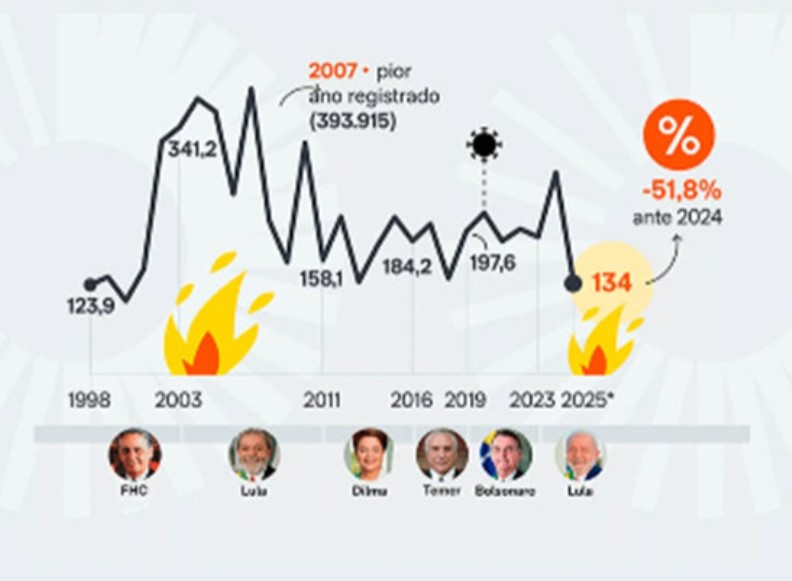Dados oficiais apontam 2025 como um ano de recuo histórico nos focos de incêndio no Brasil