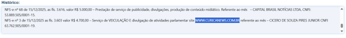 A reportagem também verificou que, até o momento, não estão disponíveis no Portal da Transparência os dados completos das prestações de contas da verba indenizatória referentes a janeiro de 2026, o que impede confirmar se os repasses ao site tiveram continuidade.